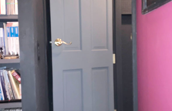センスの良い柄のアクセントクロスを寝室と書斎に施工