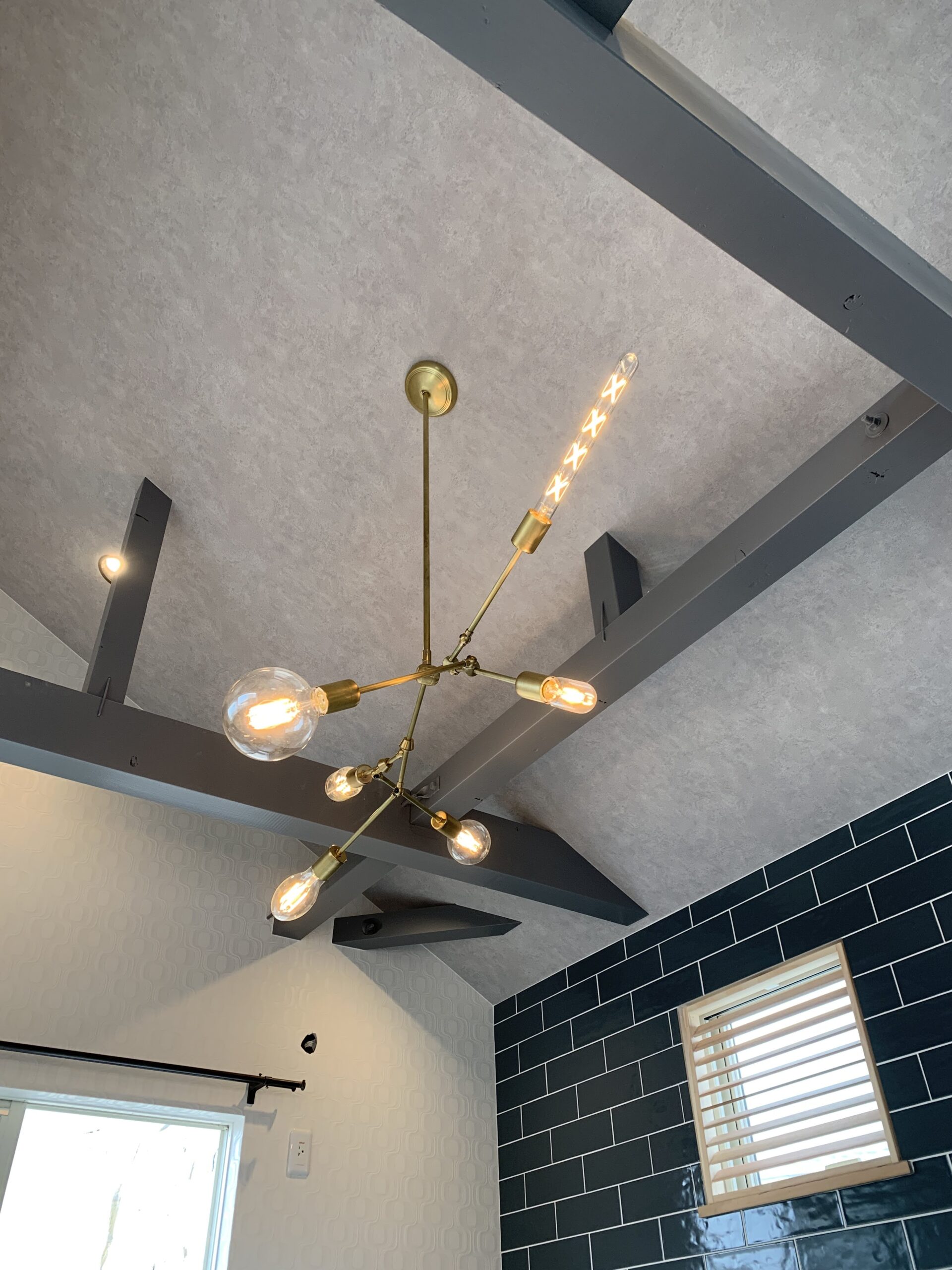 勾配天井とアクセントウォールがが印象的な戸建リノベーション