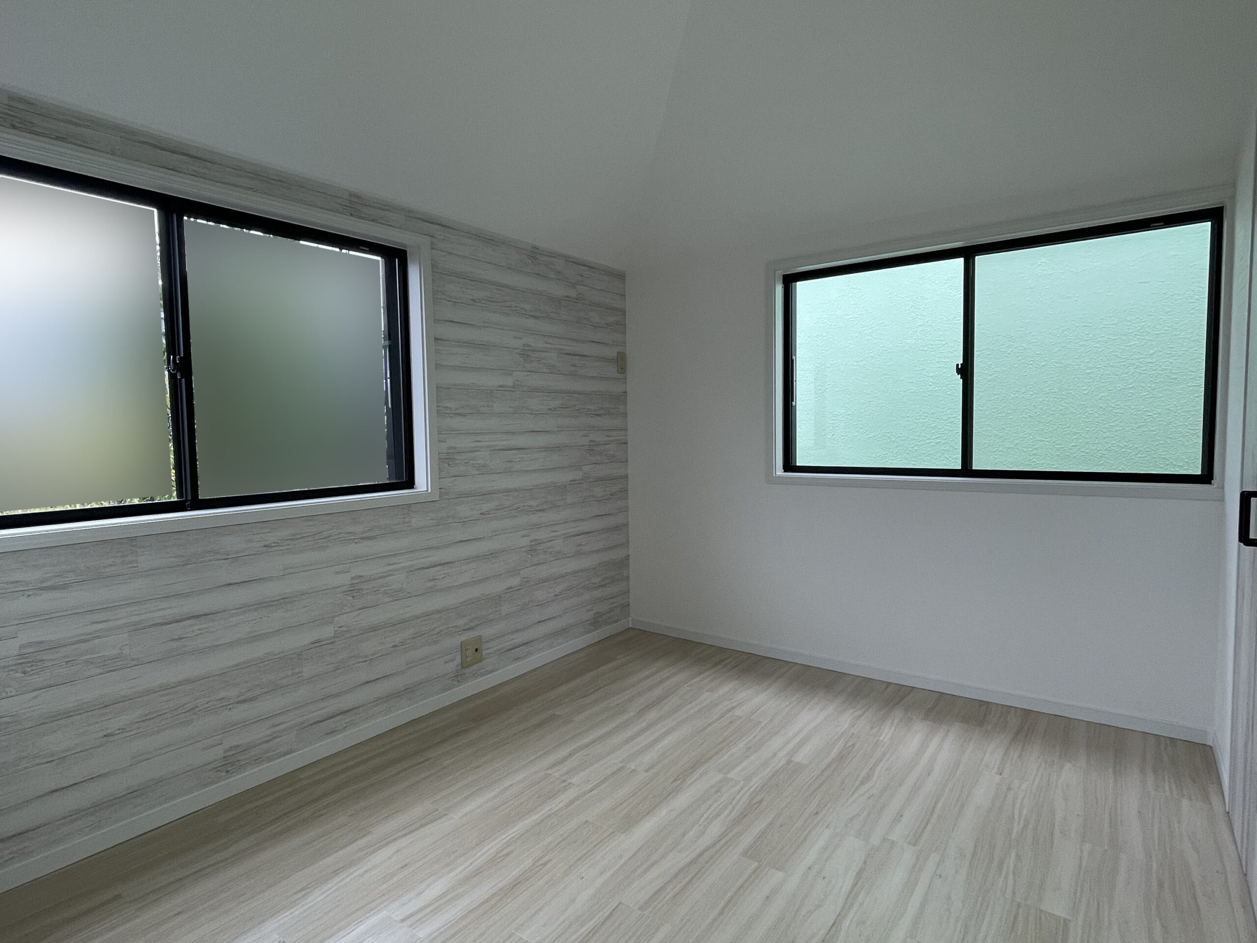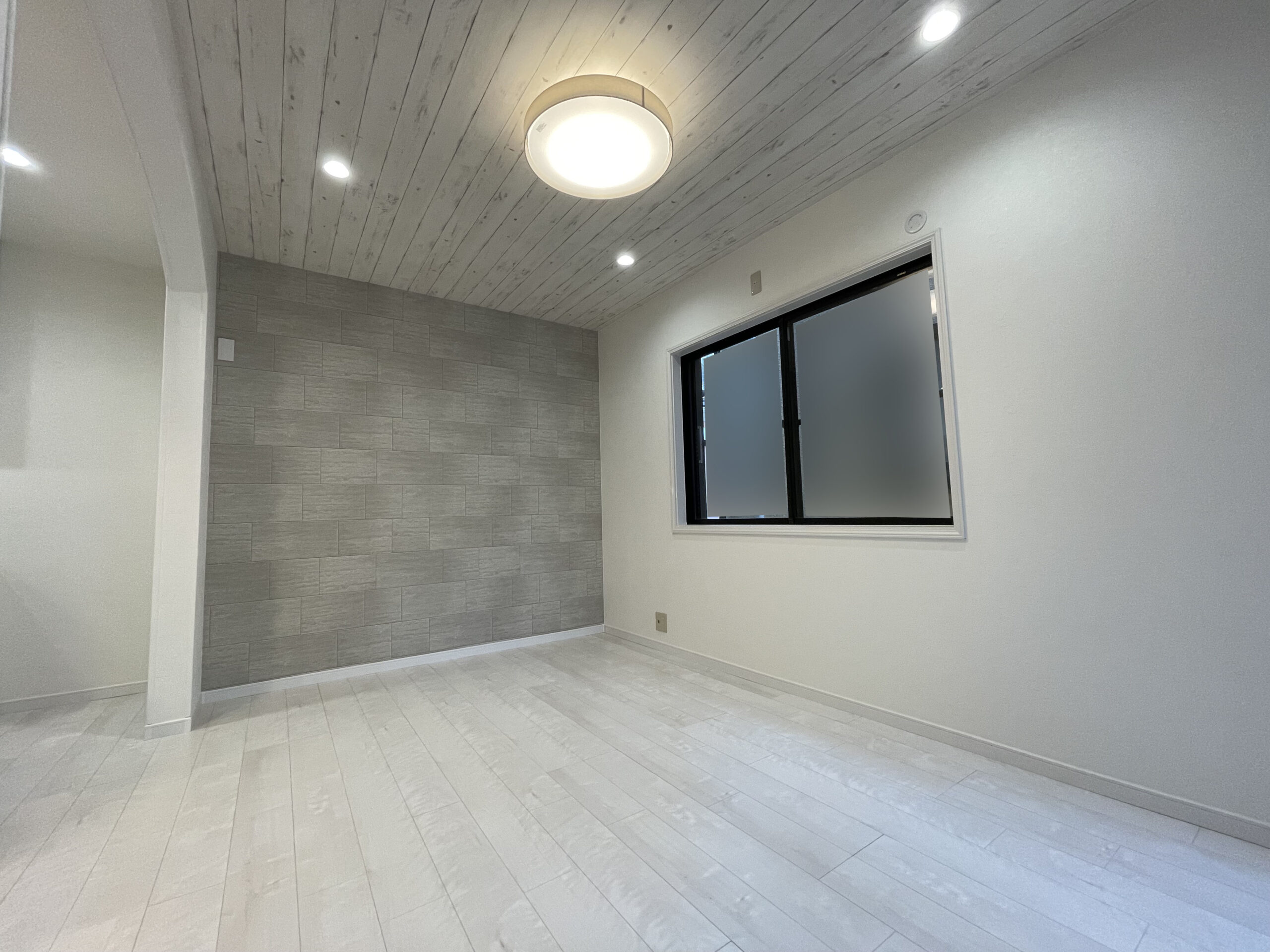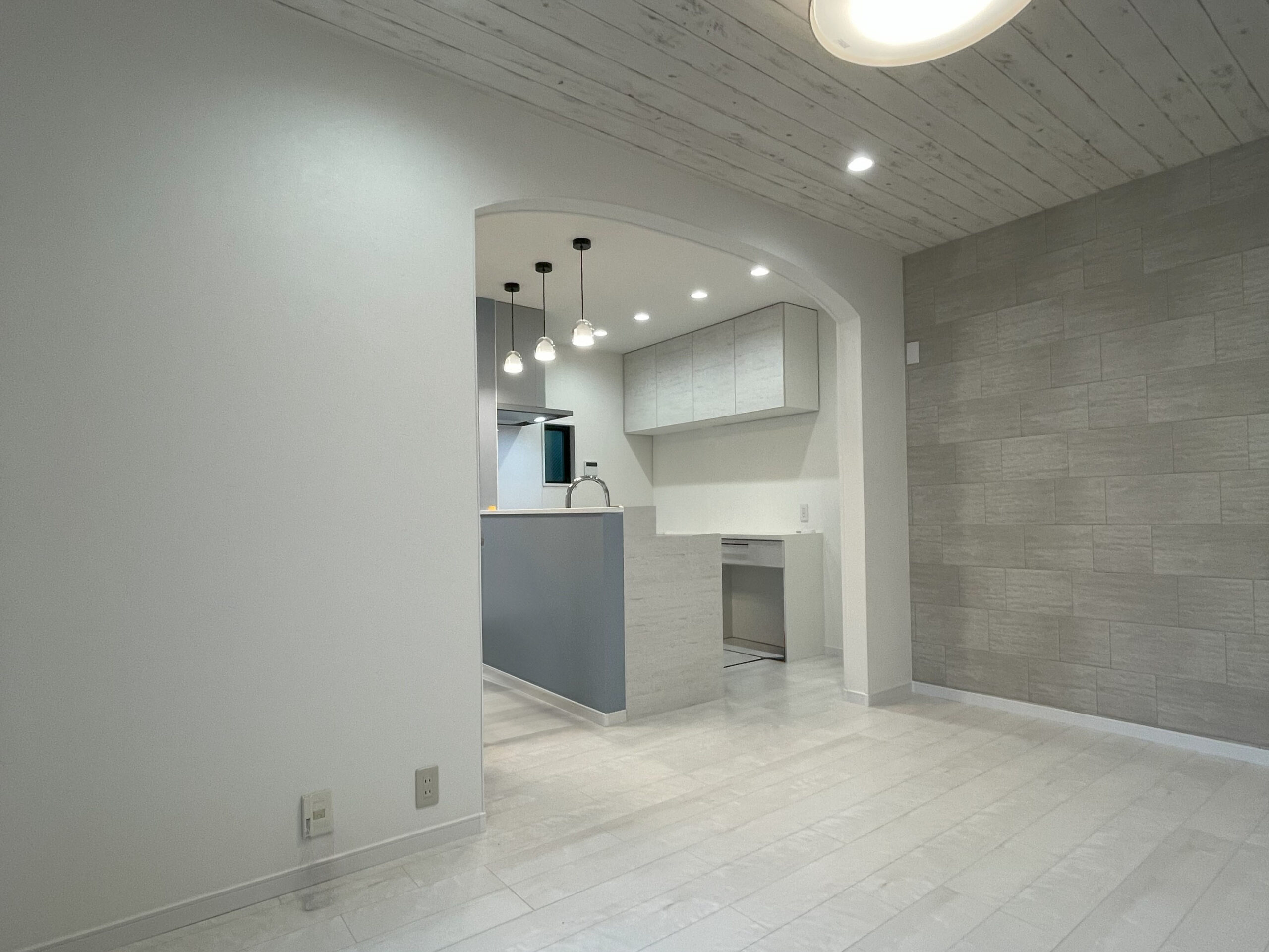 勾配天井とアクセントウォールがが印象的な戸建リノベーション