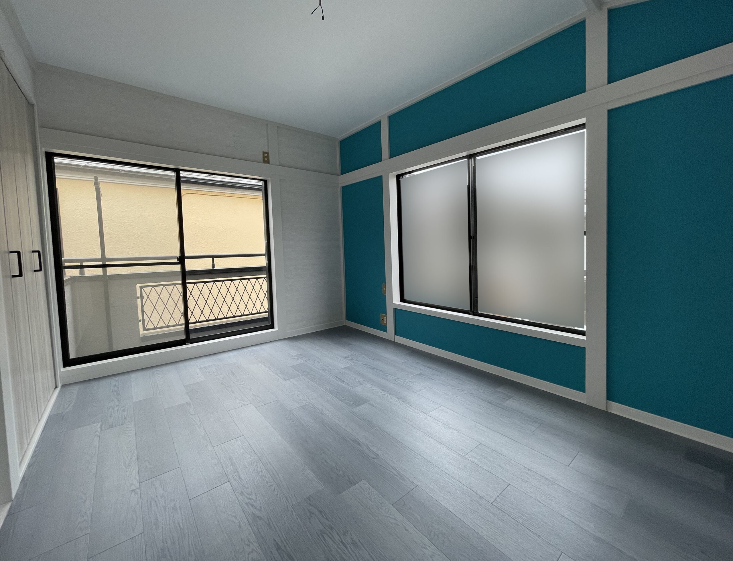 ブルーや木目調のクロスが印象的な多世代リノベ