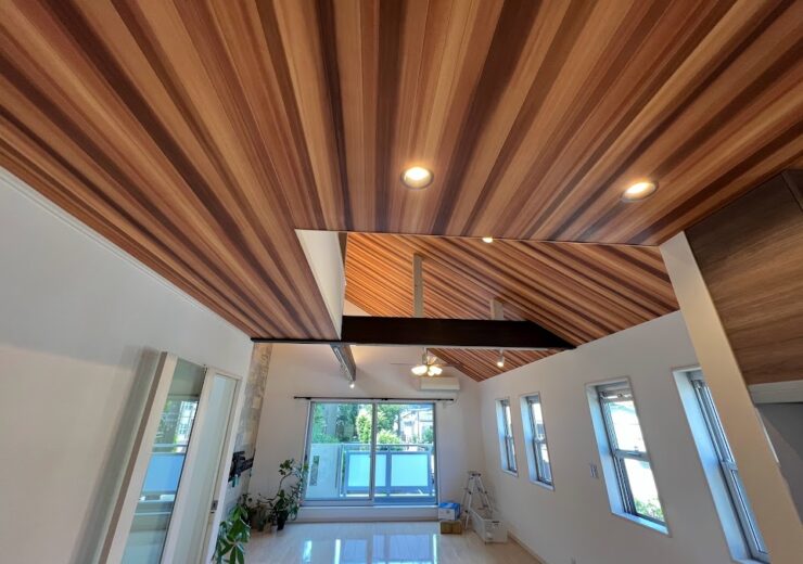 勾配天井とアクセントウォールがが印象的な戸建リノベーション