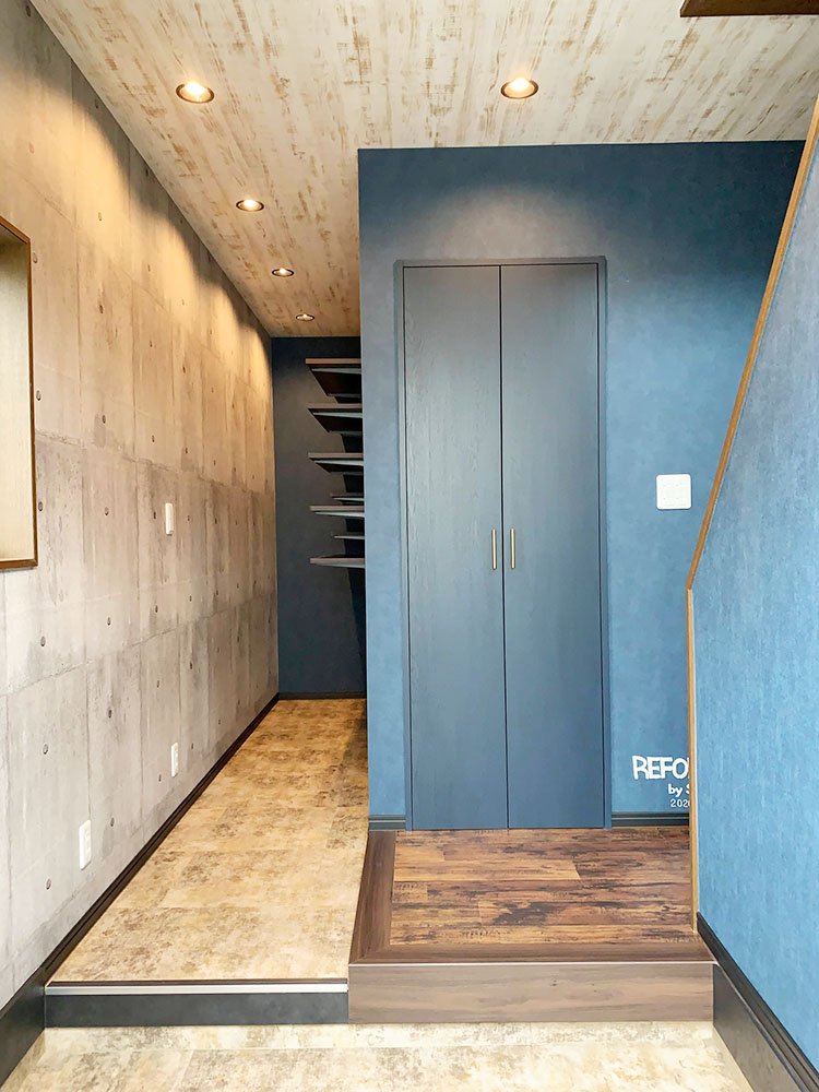 茅ヶ崎の戸建て住宅でリノベーションを施工させていただきました。間取りを変更し和室をリビング一体にして広々空間ができました。玄関にはシューズクローゼットも増設しました!アクセントクロスもたくさん採用し素敵な住まいになりました。